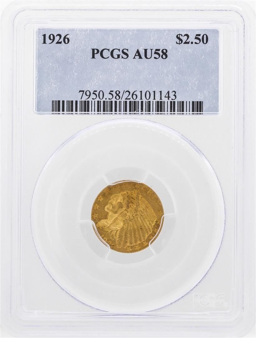 One 1926 $2 1/2 Indian Head Quarter Eagle Gold Coin PCGS AU58. PCGS Graded.