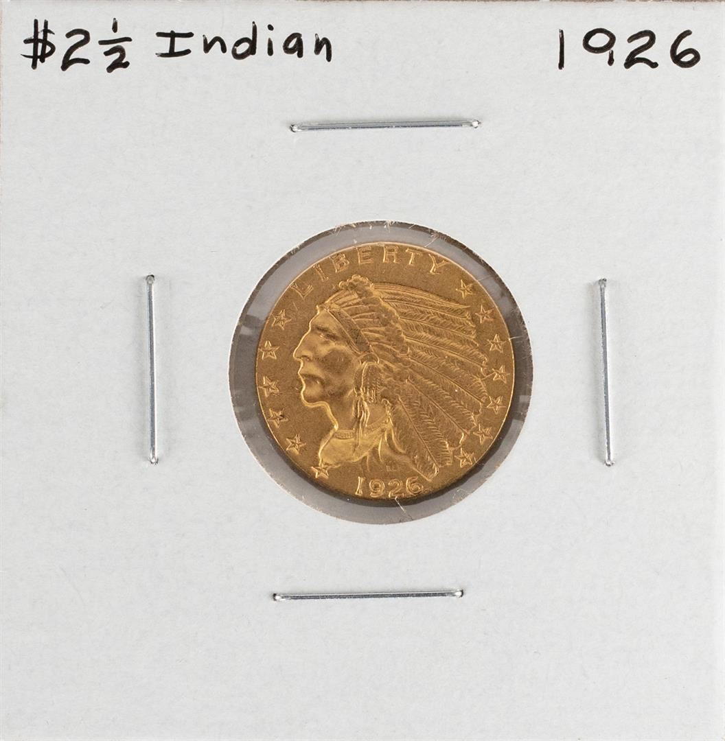 One 1926 $2 1/2 Indian Head Quarter Eagle Gold Coin.