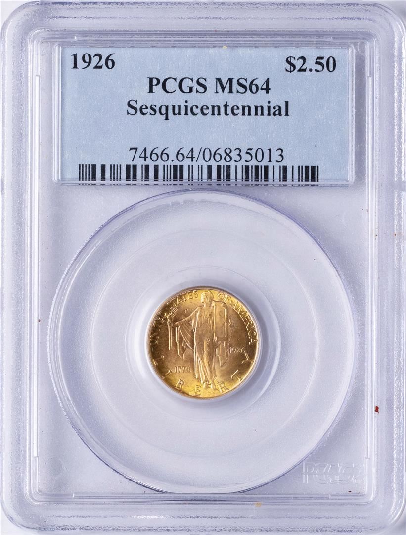 One 1926 $2 1/2 Sesquicentennial Commemorative Gold Coin PCGS MS64. PCGS Graded.