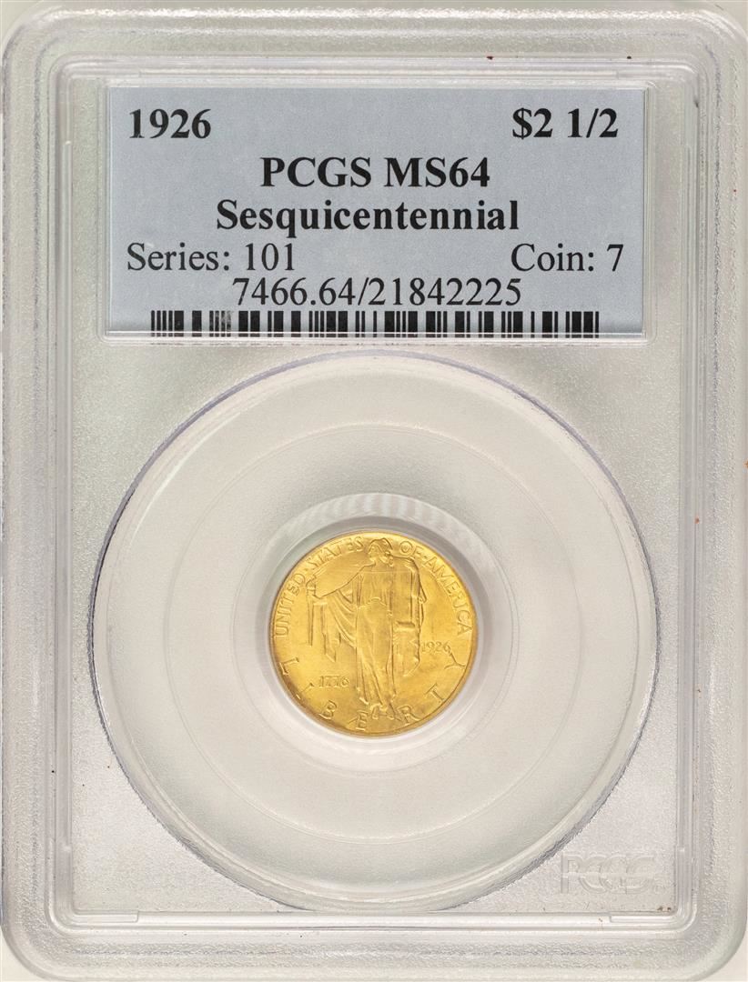 One 1926 $2 1/2 Sesquicentennial Commemorative Gold Coin PCGS MS64. PCGS Graded.