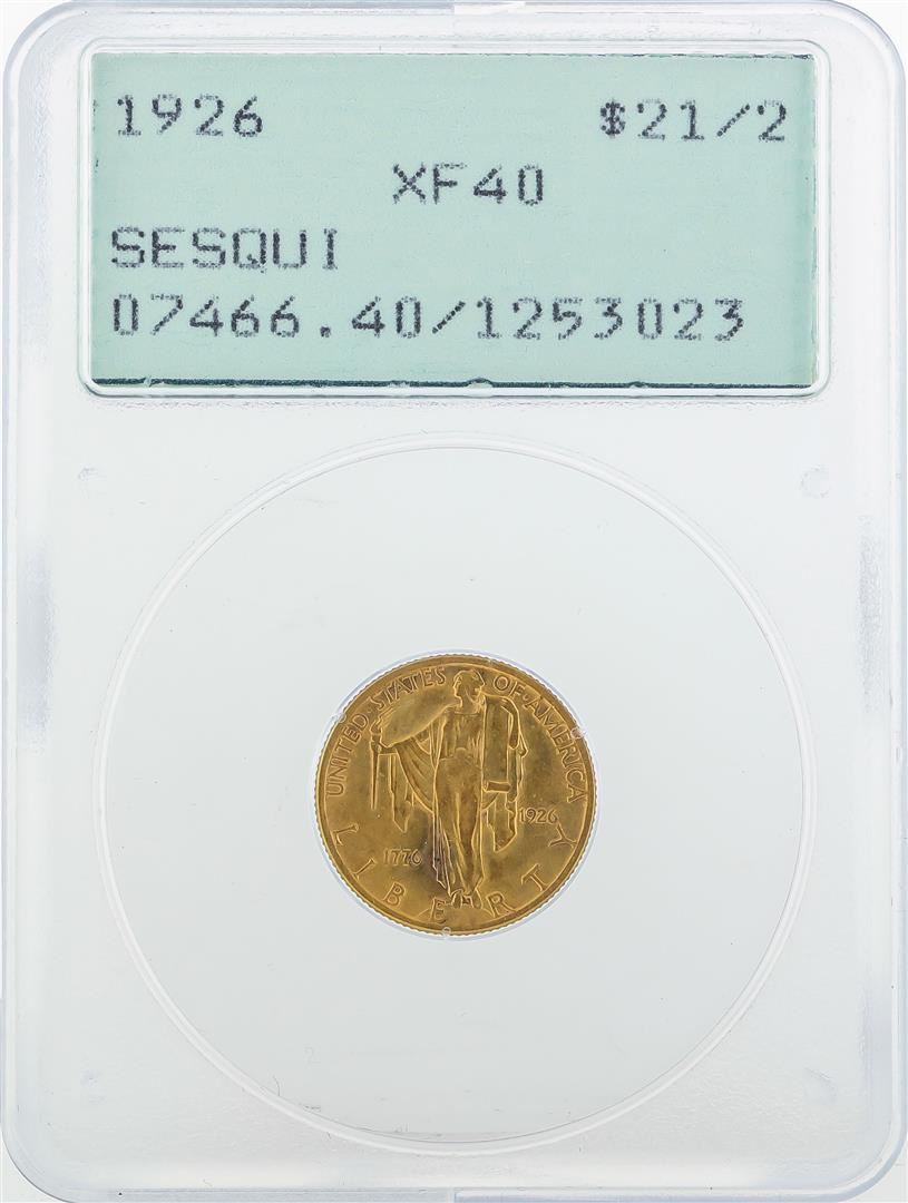 One 1926 $2 1/2 Sesquicentennial Gold Coin PCGS XF40. PCGS Graded.