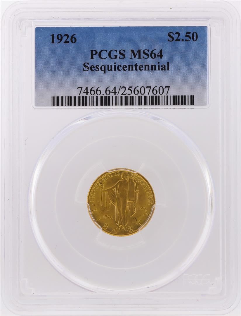One 1926 $2 1/2 Sesquicentennial Gold Commemorative Coin PCGS Graded MS64. PCGS Graded.