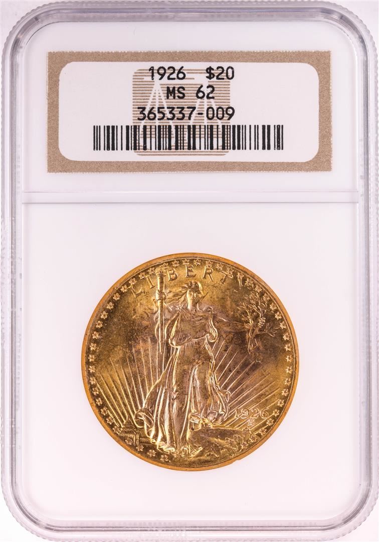 One 1926 $20 St. Gaudens Double Eagle Gold Coin NGC MS62. NGC Certified.