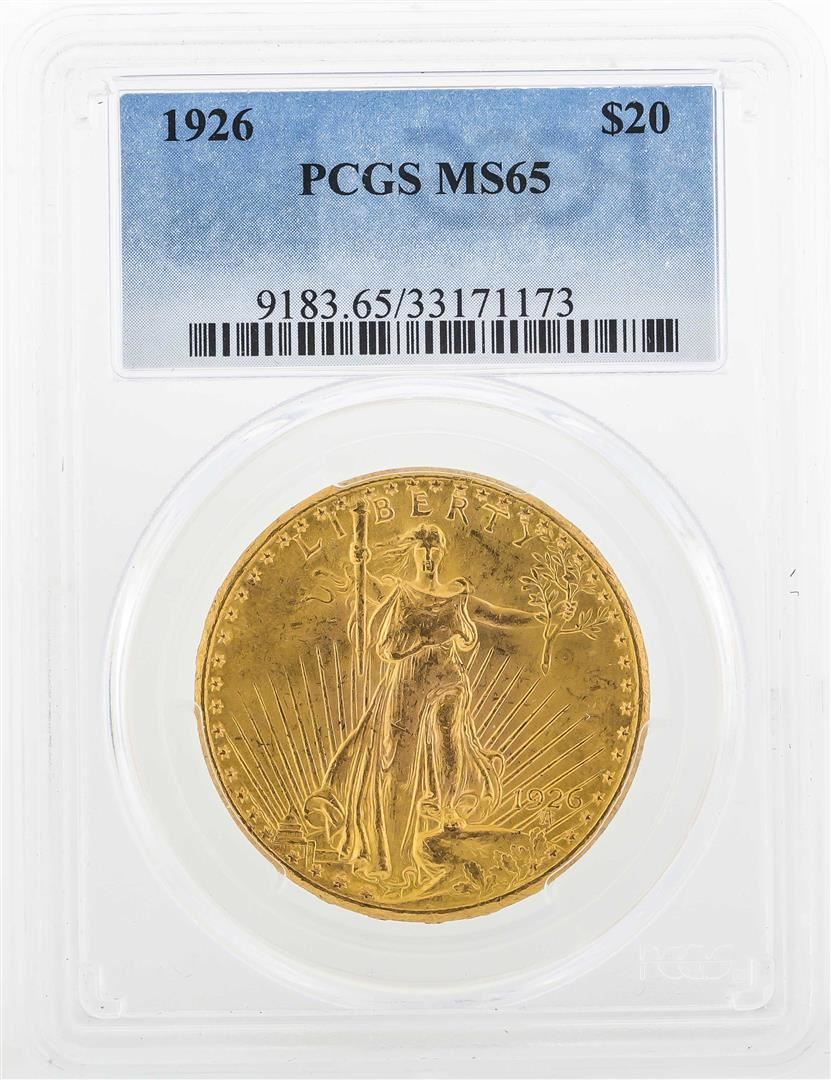 One 1926 $20 St. Gaudens Double Eagle Gold Coin PCGS MS65. PCGS Graded.