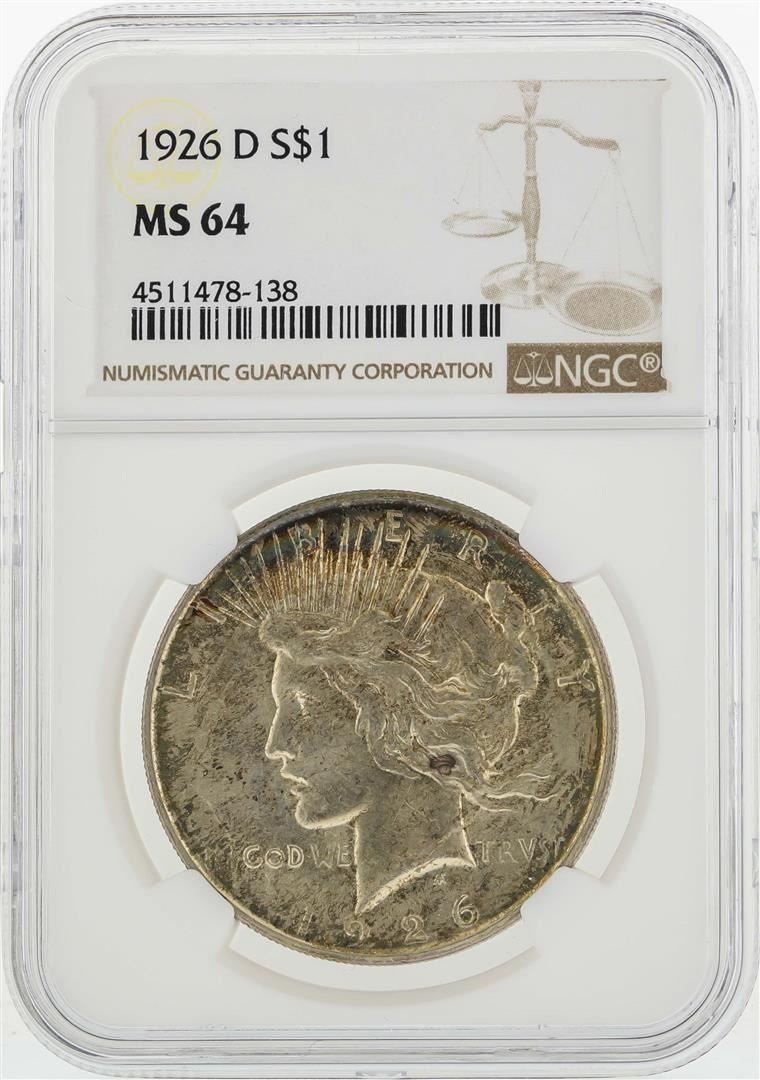 1926-D $1 Morgan Silver Dollar Coin Rare Toned NGC MS64