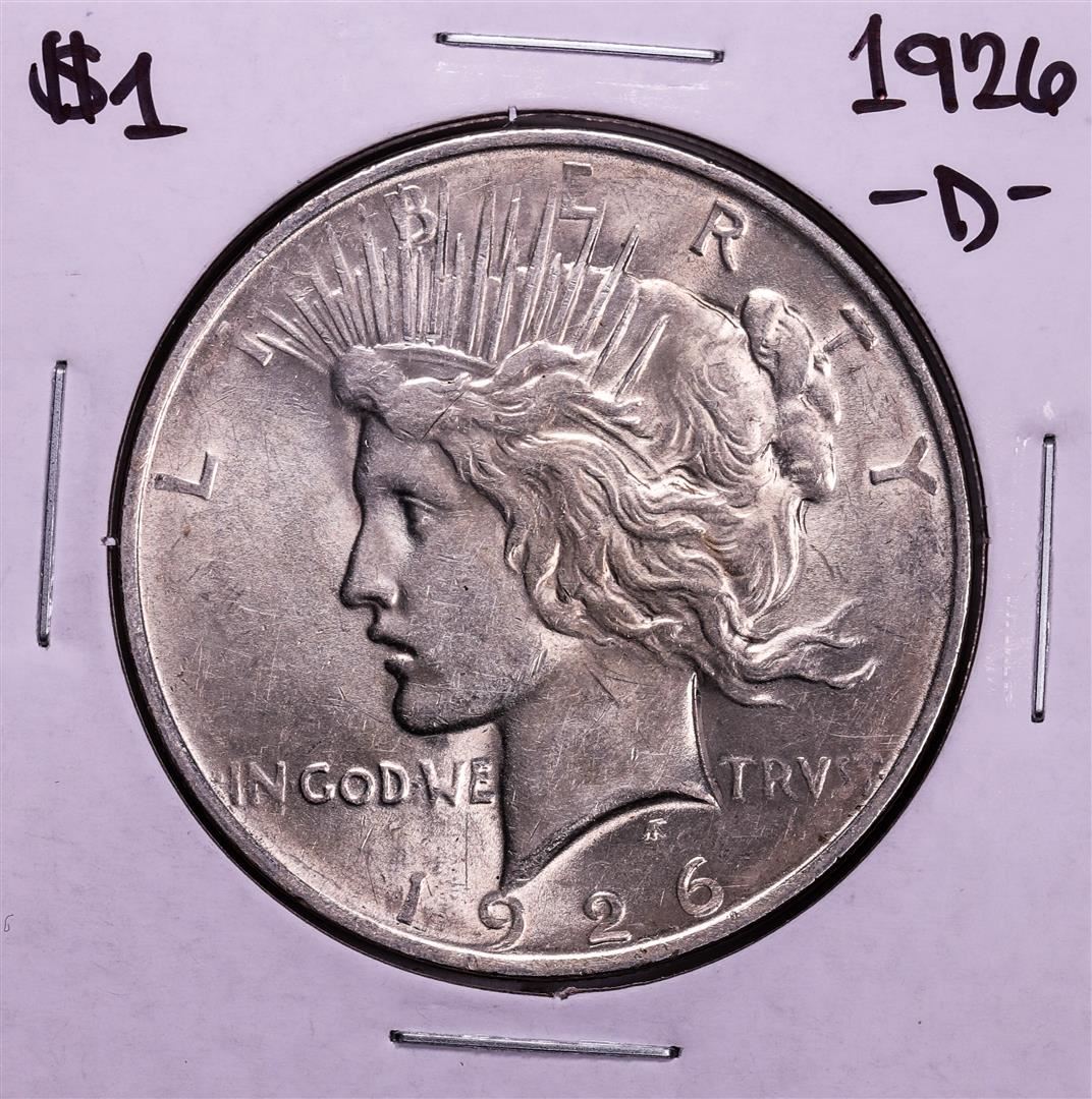 One 1926-D $1 Peace Silver Dollar Coin.