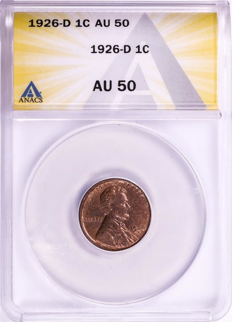 One 1926-D Lincoln Wheat Cent Coin ANACS AU50. ANACS Certified.