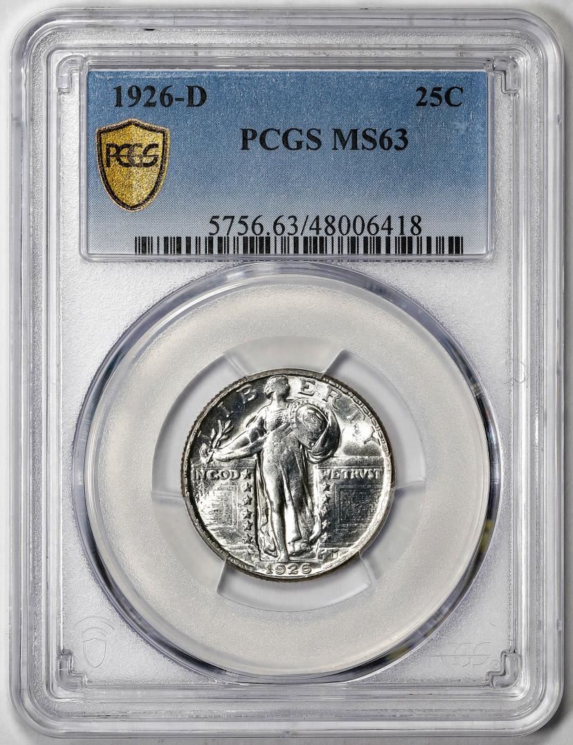 One 1926-D Standing Liberty Quarter Coin PCGS MS63. PCGS Graded.