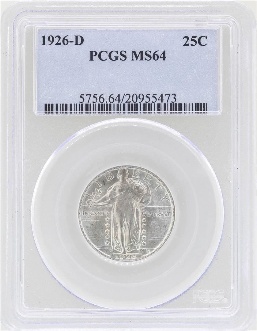 One 1926-D Standing Quarter Silver Coin PCGS MS64. PCGS Graded.