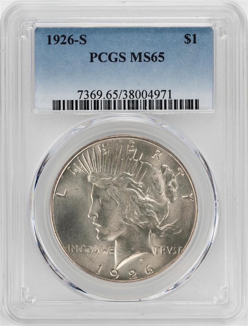 One 1926-S $1 Peace Silver Dollar Coin PCGS MS65. PCGS Graded.