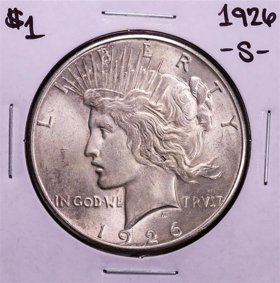 One 1926-S $1 Peace Silver Dollar Coin.