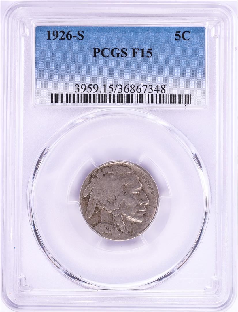 One 1926-S Buffalo Nickel Coin PCGS F15. PCGS Graded.