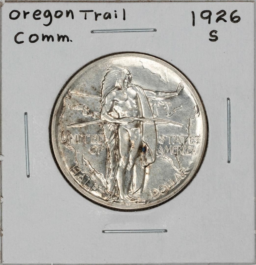 One 1926-S Oregon Trail Commemorative Half Dollar Coin.