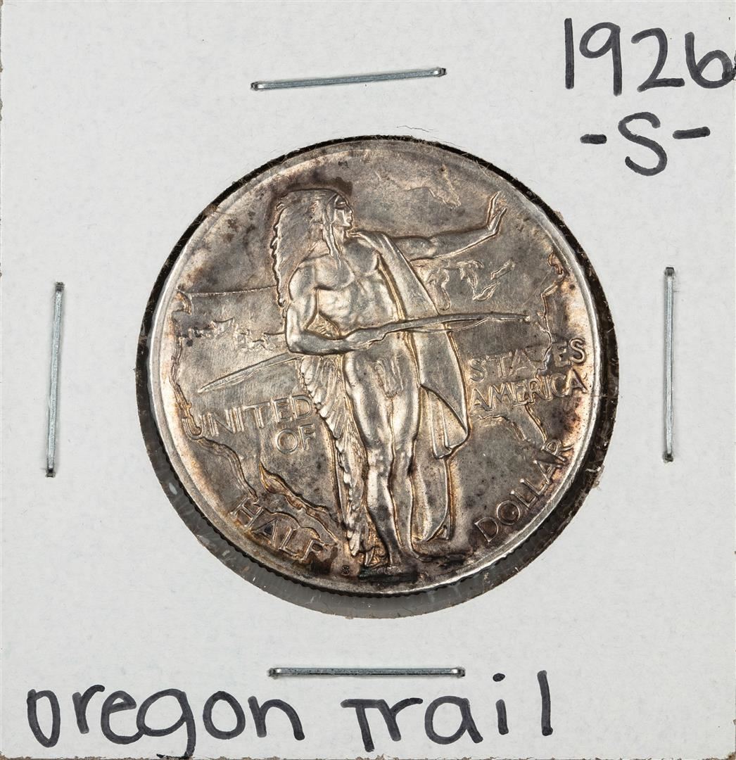 One 1926-S Oregon Trail Commemorative Half Dollar Coin.