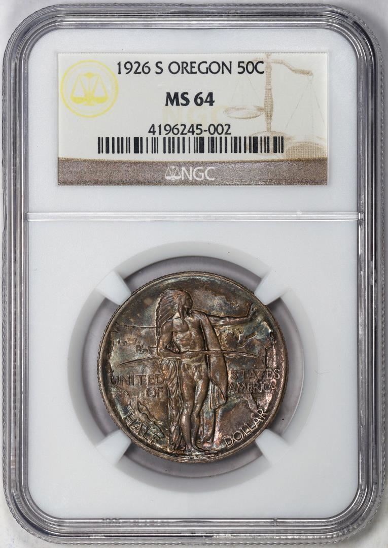 One 1926-S Oregon Trail Memorial Commemorative Half Dollar Coin NGC MS64 Amazing Color. NGC Certified.