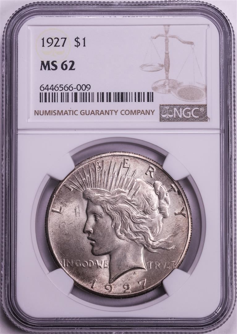 One 1927 $1 Peace Silver Dollar Coin NGC MS62. NGC Certified.