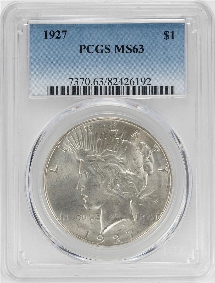 One 1927 $1 Peace Silver Dollar Coin PCGS MS63. PCGS Graded.