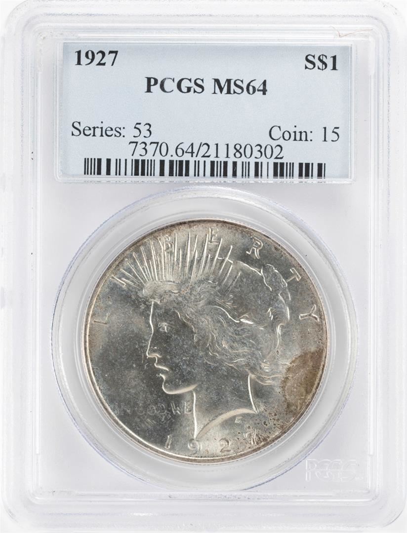 One 1927 $1 Peace Silver Dollar Coin PCGS MS64. PCGS Graded.