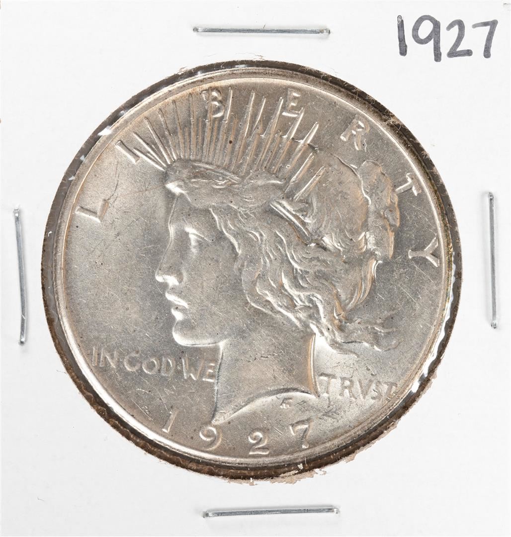 One 1927 $1 Peace Silver Dollar Coin.