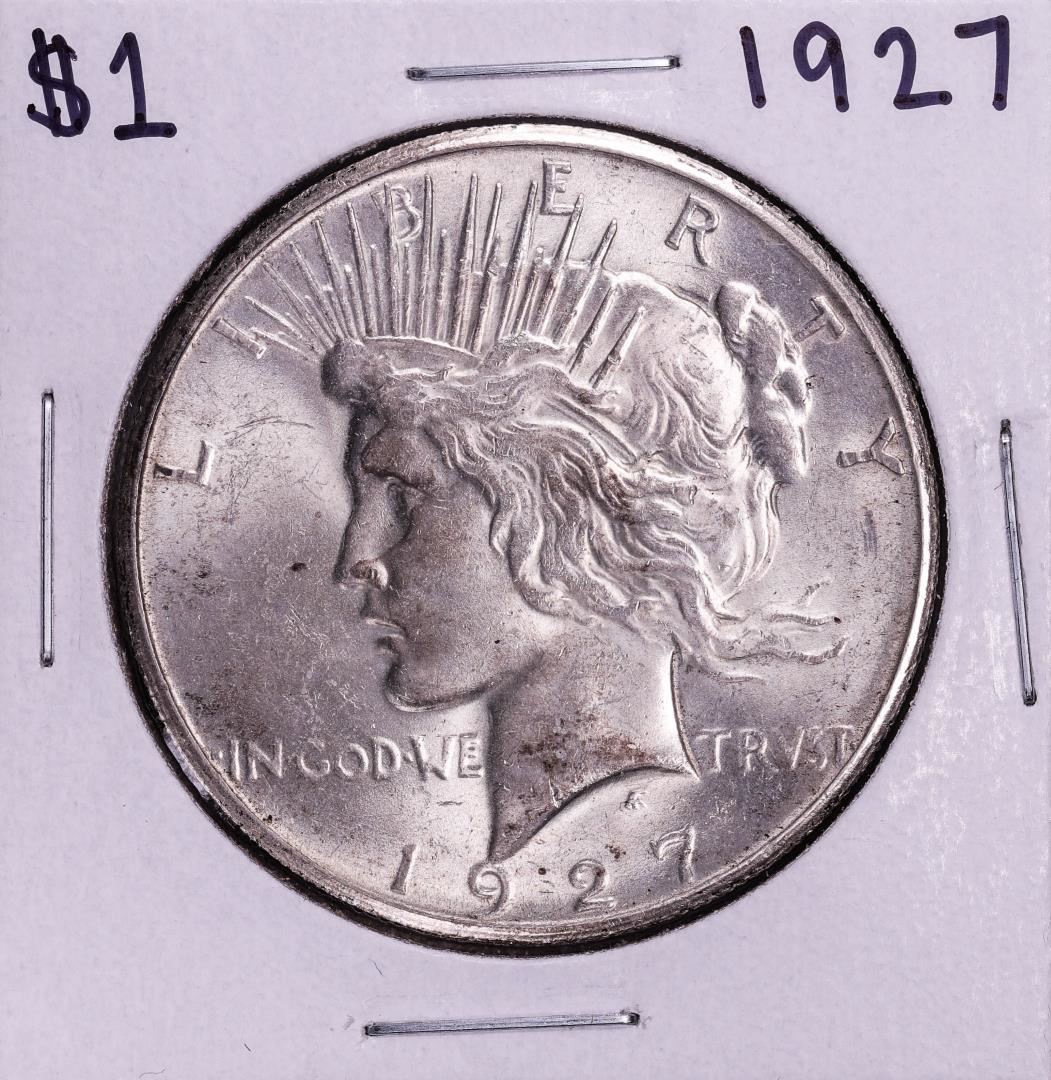 One 1927 $1 Peace Silver Dollar Coin.