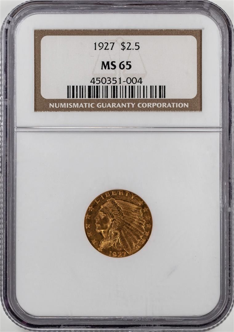 One 1927 $2 1/2 Indian Head Quarter Eagle Gold Coin NGC MS65. NGC Certified.