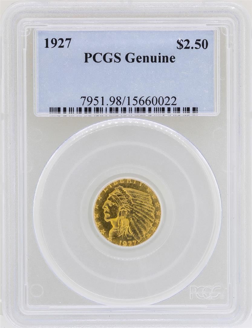 One 1927 $2 1/2 Indian Head Quarter Eagle Gold Coin PCGS Genuine. PCGS Graded.