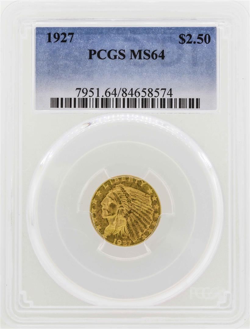 One 1927 $2 1/2 Indian Head Quarter Eagle Gold Coin PCGS MS64. PCGS Graded.