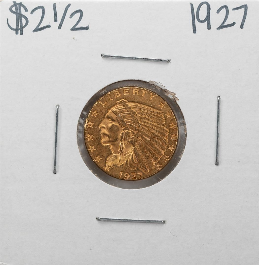 One 1927 $2 1/2 Indian Head Quarter Eagle Gold Coin.