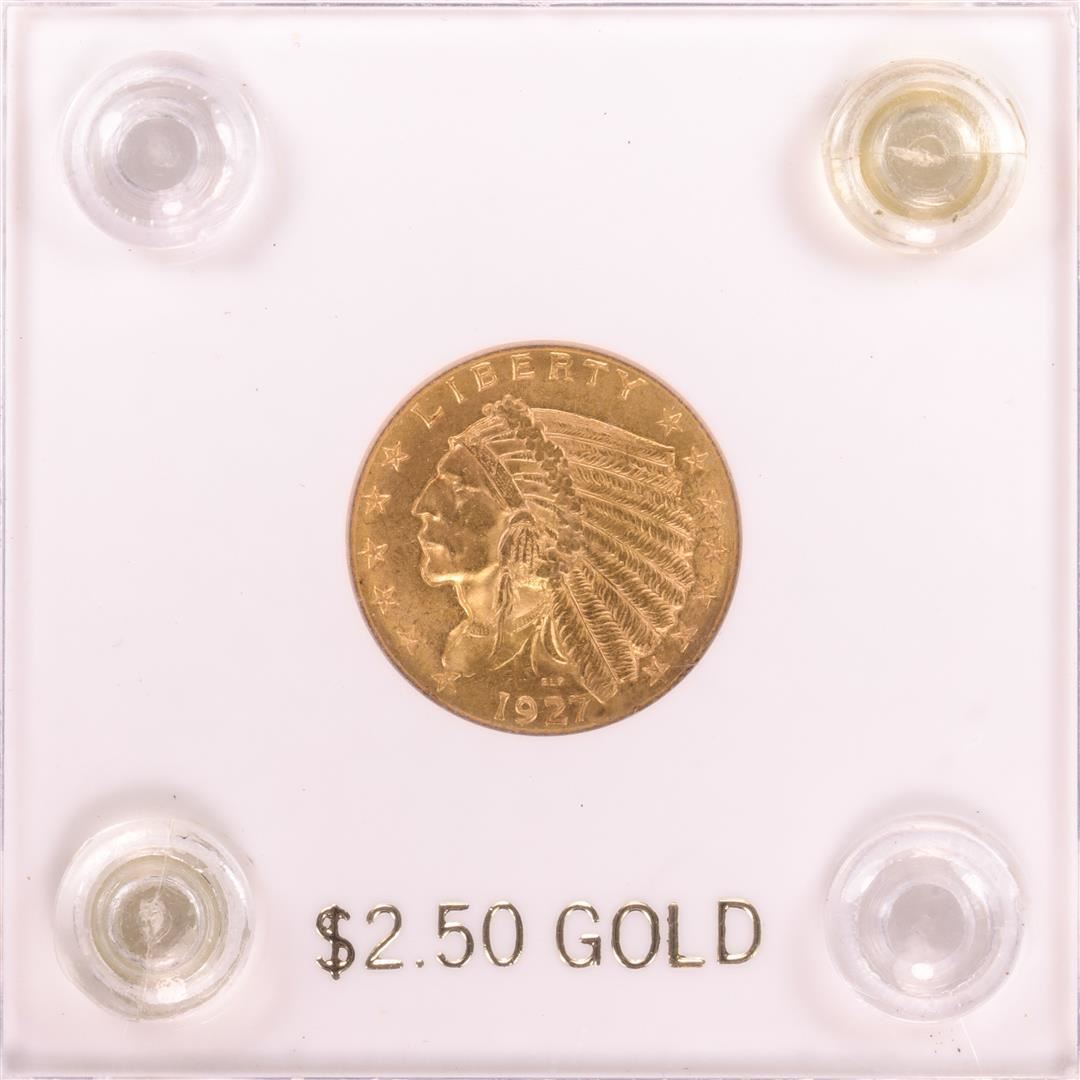 One 1927 $2 1/2 Indian Head Quarter Eagle Gold Coin.