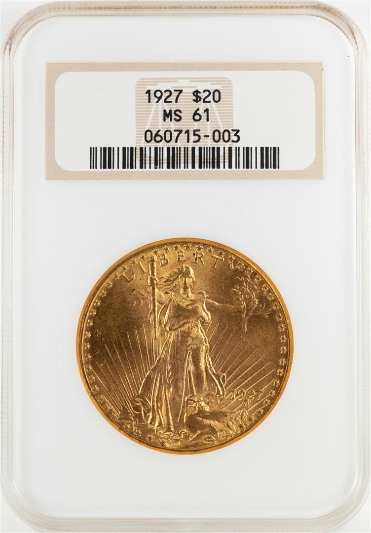 1927 $20 St. Gaudens Double Eagle Gold Coin NGC MS61