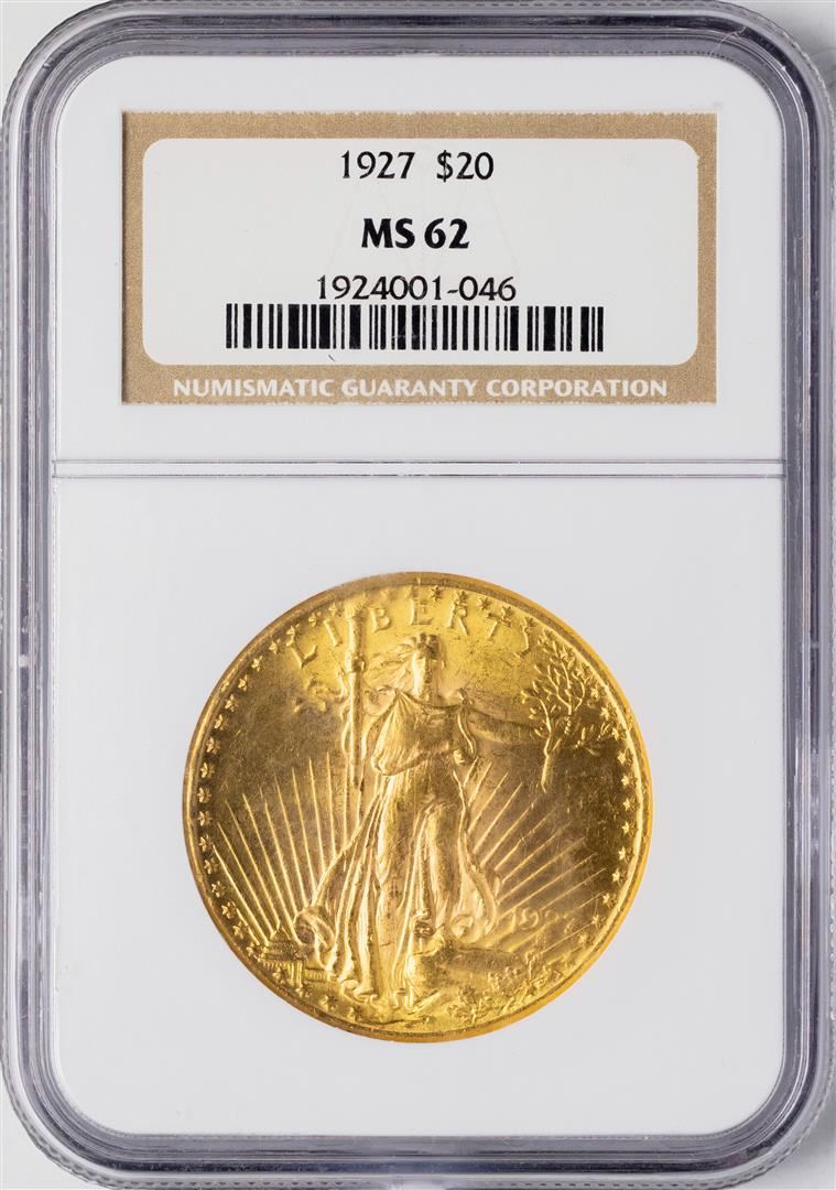1927 $20 St. Gaudens Double Eagle Gold Coin NGC MS62