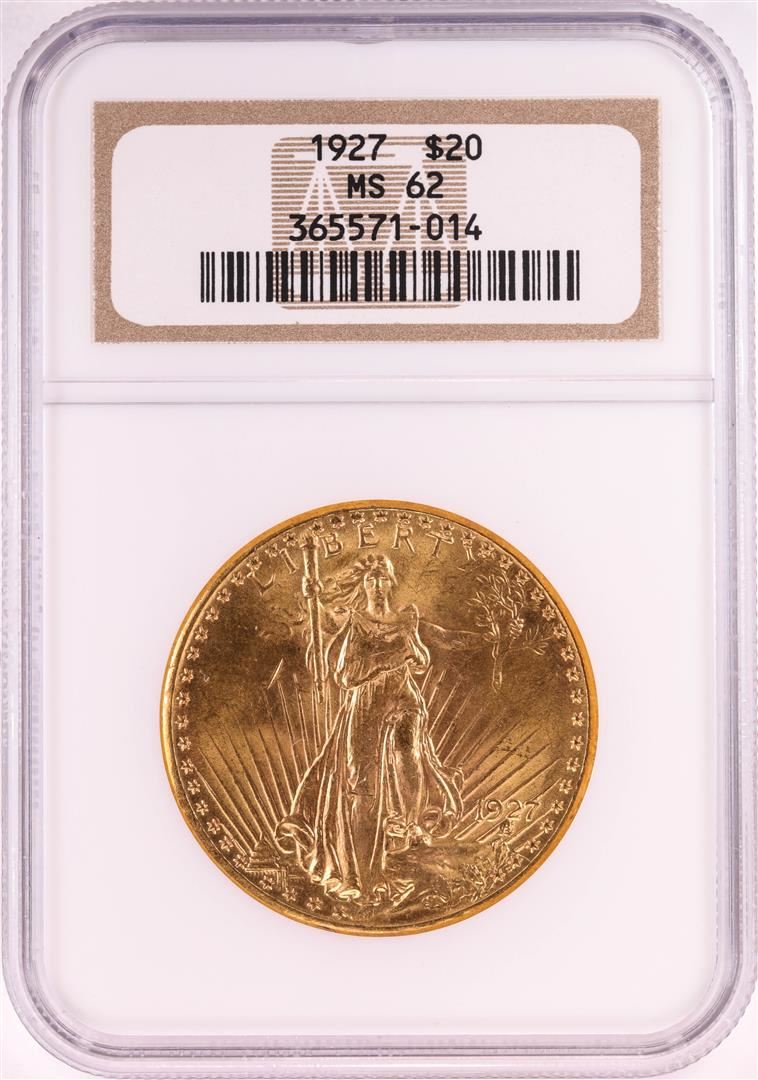 One 1927 $20 St. Gaudens Double Eagle Gold Coin NGC MS62. NGC Certified.