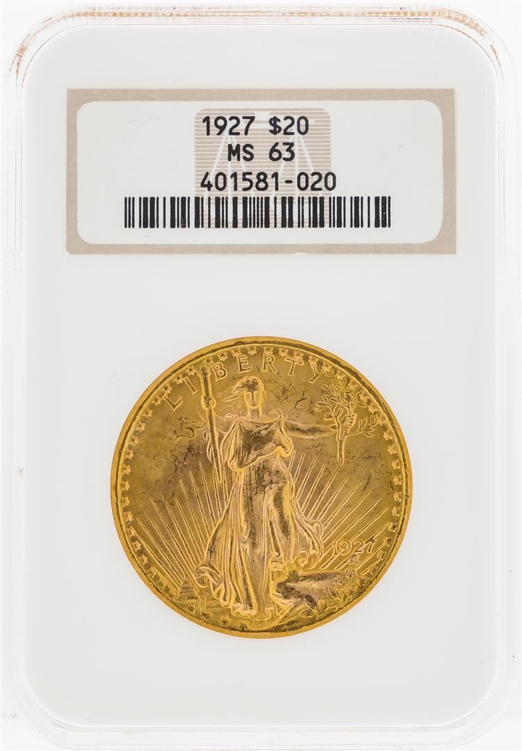 One 1927 $20 St. Gaudens Double Eagle Gold Coin NGC MS63. NGC Certified.