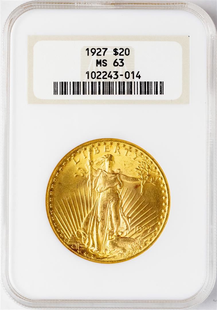 One 1927 $20 St. Gaudens Double Eagle Gold Coin NGC MS63. NGC Certified.