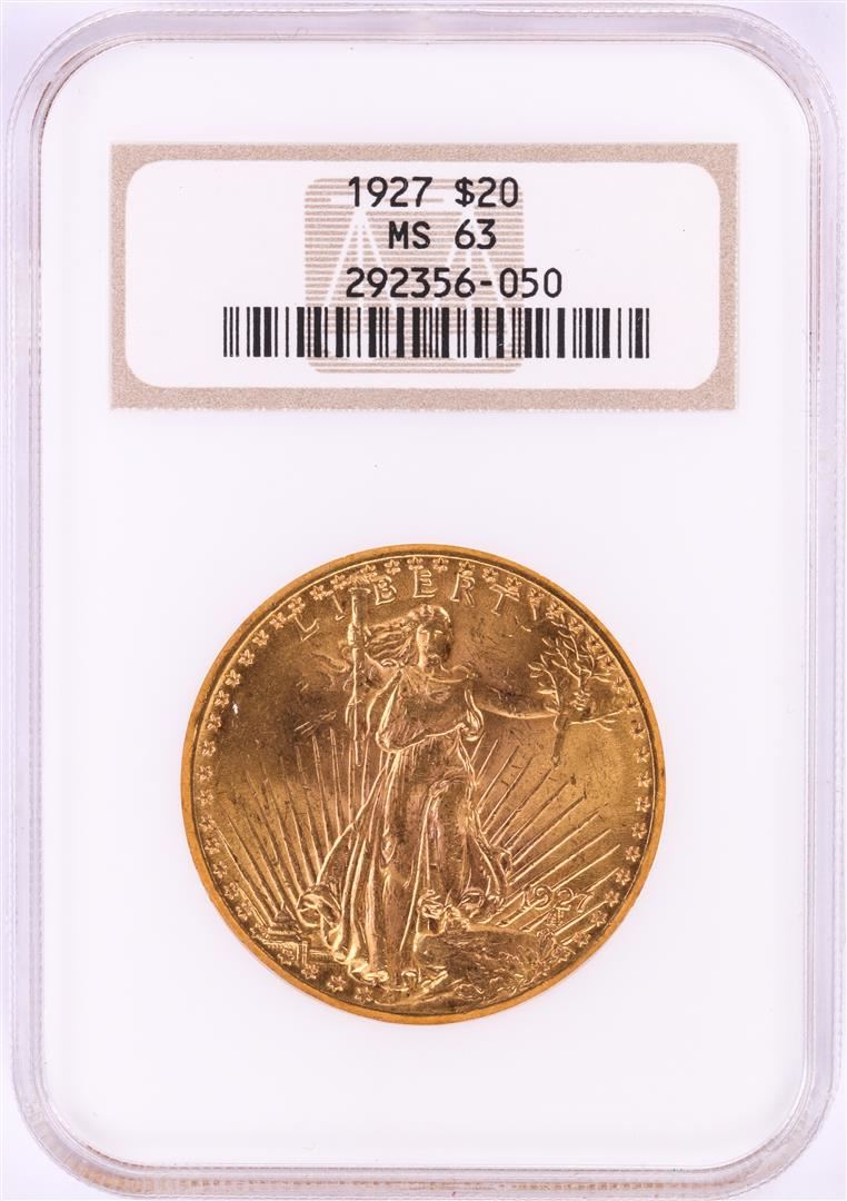 One 1927 $20 St. Gaudens Double Eagle Gold Coin NGC MS63. NGC Certified.