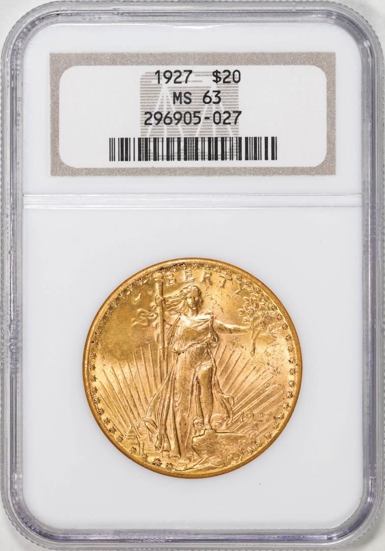 1927 $20 St. Gaudens Double Eagle Gold Coin NGC MS63