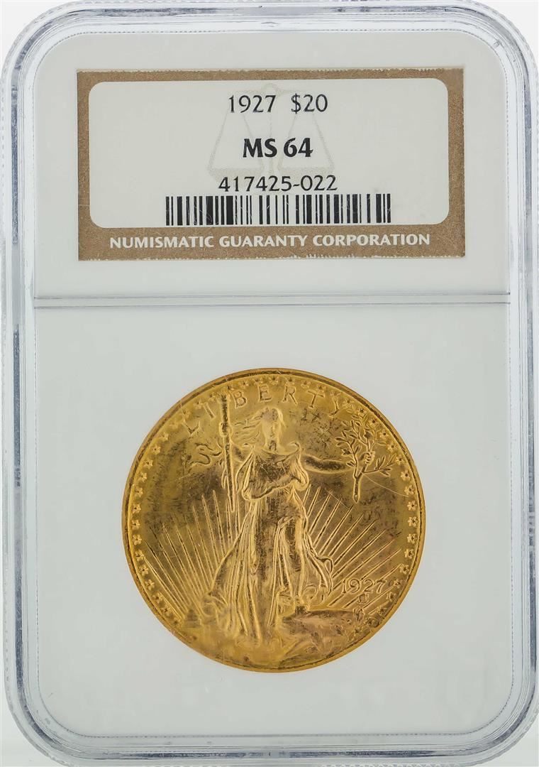 One 1927 $20 St. Gaudens Double Eagle Gold Coin NGC MS64. NGC Certified.