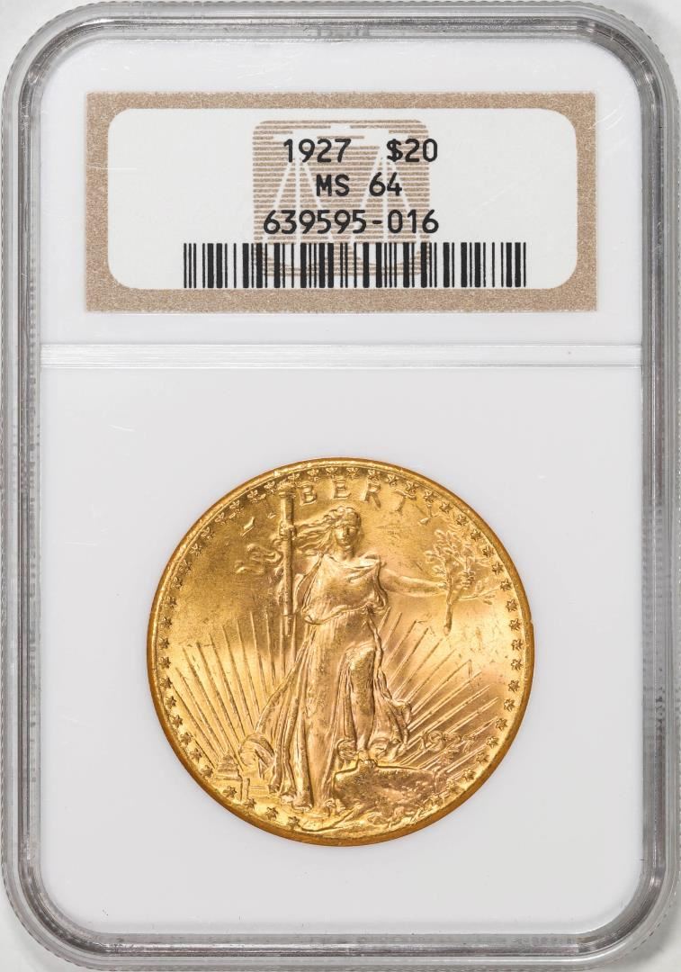 One 1927 $20 St. Gaudens Double Eagle Gold Coin NGC MS64. NGC Certified.