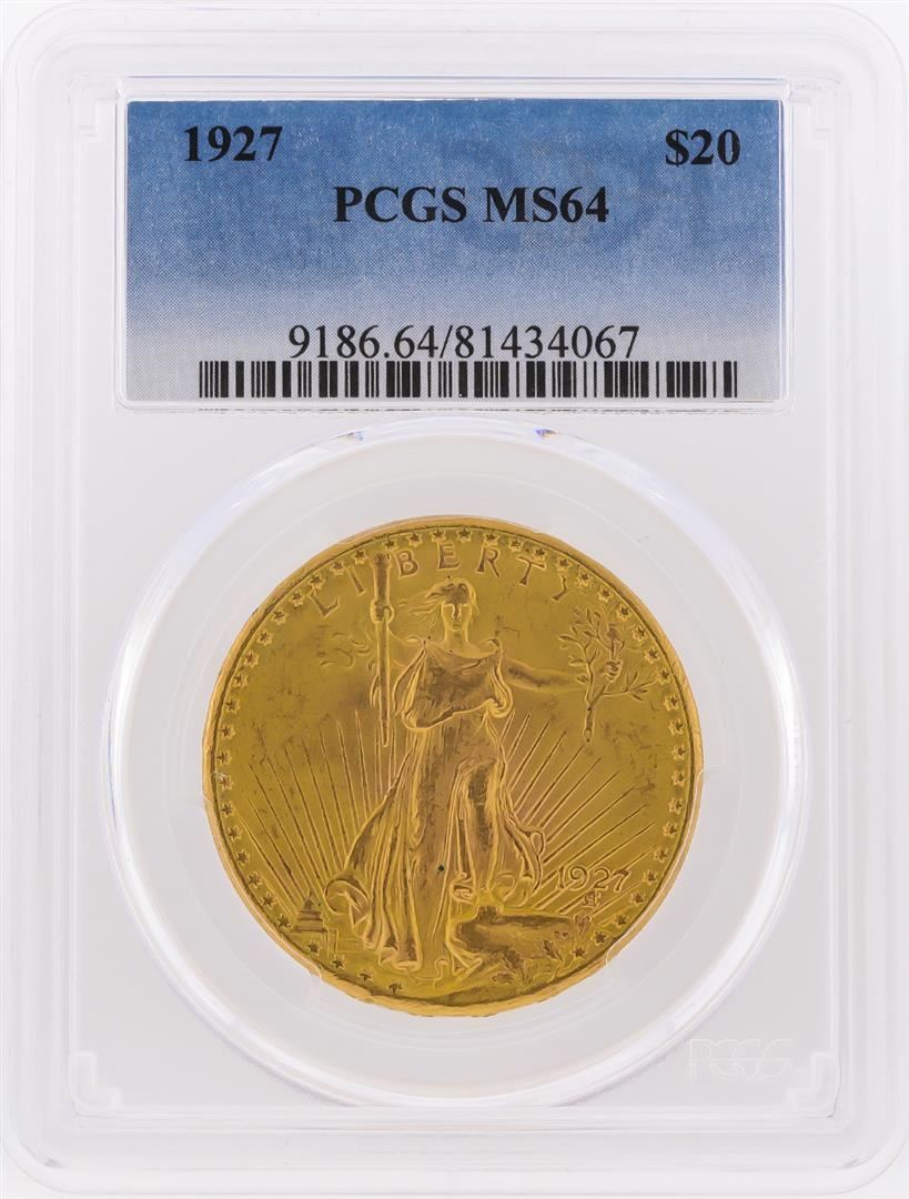 One 1927 $20 St. Gaudens Double Eagle Gold Coin PCGS Graded MS64. PCGS Graded.