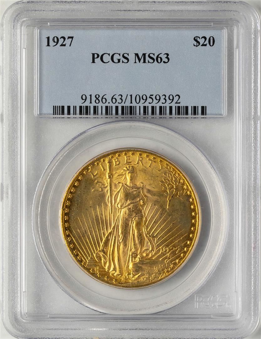 One 1927 $20 St. Gaudens Double Eagle Gold Coin PCGS MS63. PCGS Graded.