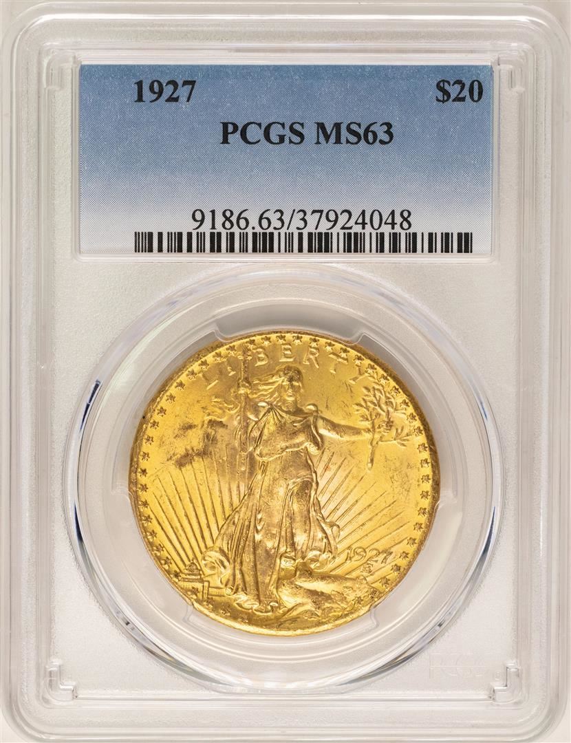 One 1927 $20 St. Gaudens Double Eagle Gold Coin PCGS MS63. PCGS Graded.