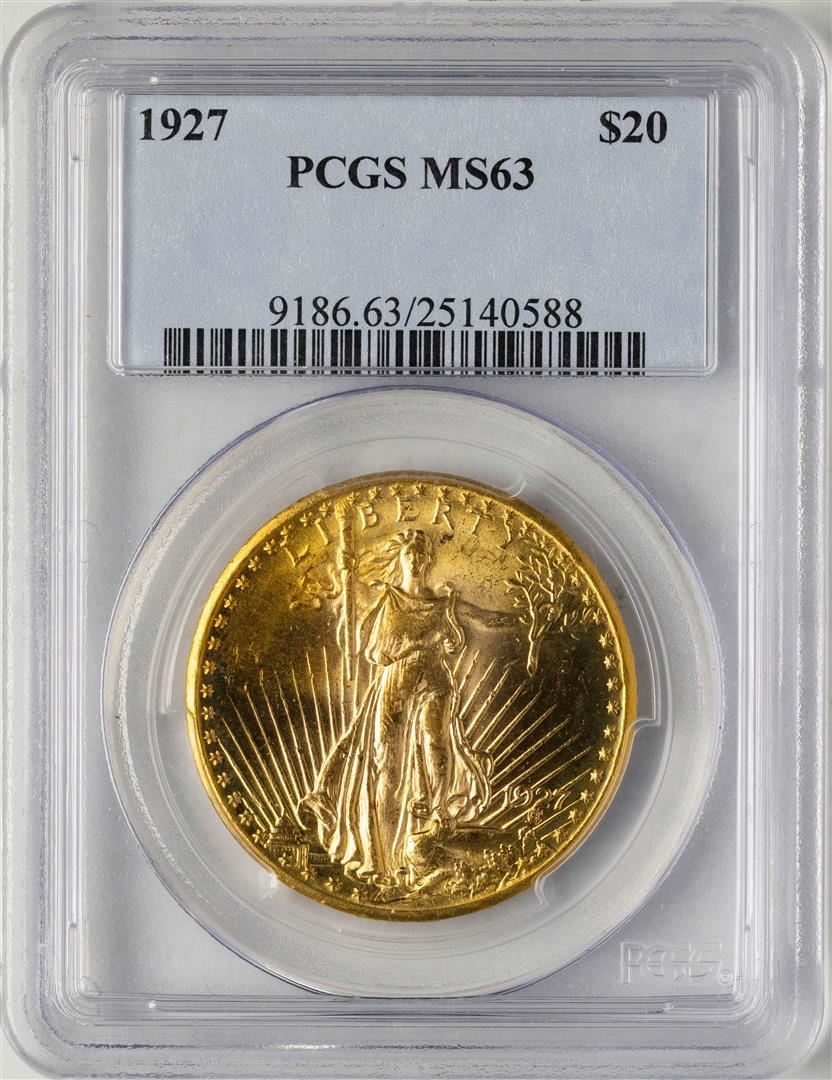 One 1927 $20 St. Gaudens Double Eagle Gold Coin PCGS MS63. PCGS Graded.