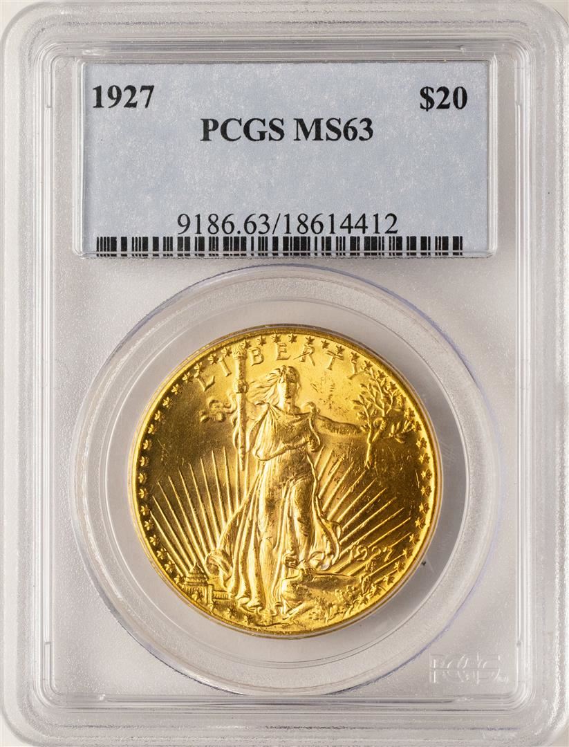 One 1927 $20 St. Gaudens Double Eagle Gold Coin PCGS MS63. PCGS Graded.