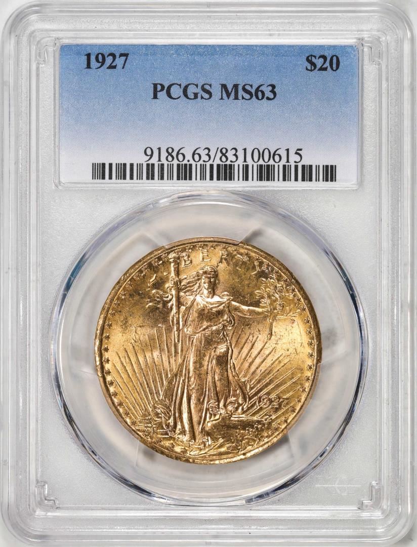 One 1927 $20 St. Gaudens Double Eagle Gold Coin PCGS MS63. PCGS Graded.
