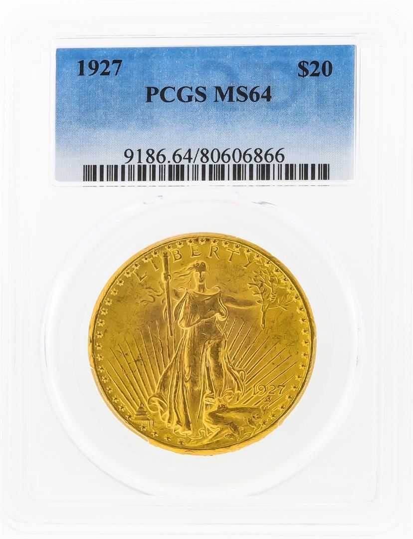 One 1927 $20 St. Gaudens Double Eagle Gold Coin PCGS MS64. PCGS Graded.