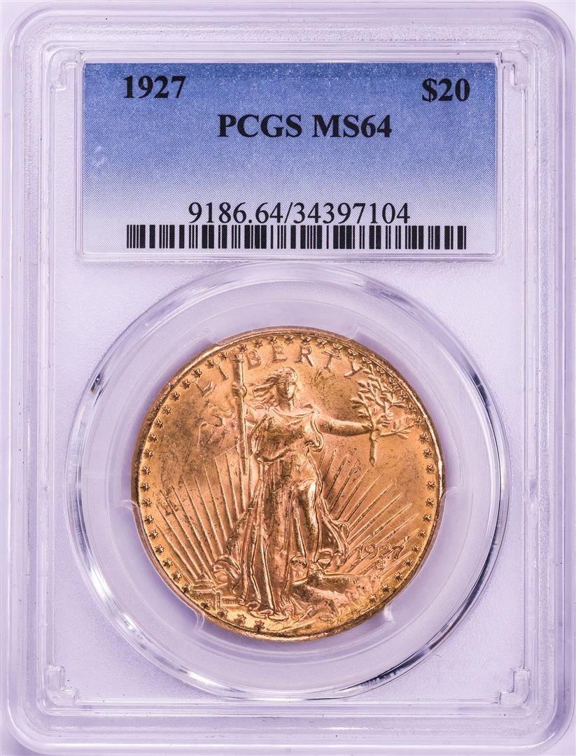 One 1927 $20 St. Gaudens Double Eagle Gold Coin PCGS MS64.