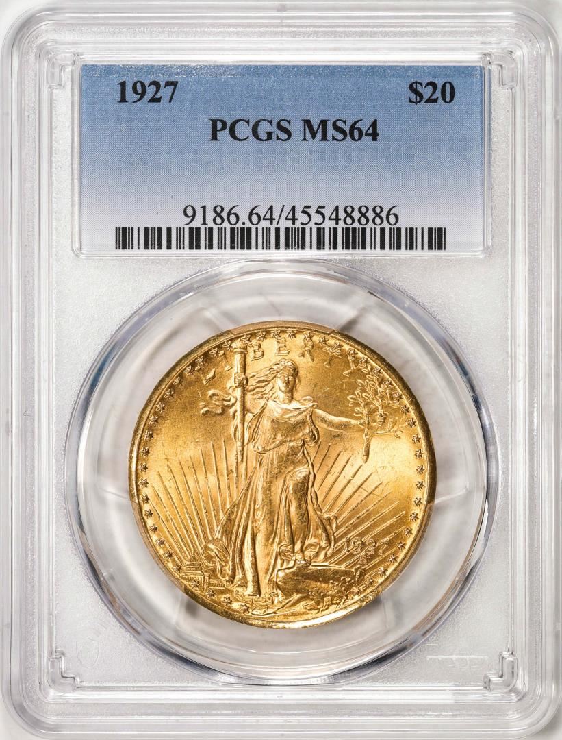 One 1927 $20 St. Gaudens Double Eagle Gold Coin PCGS MS64. PCGS Graded.
