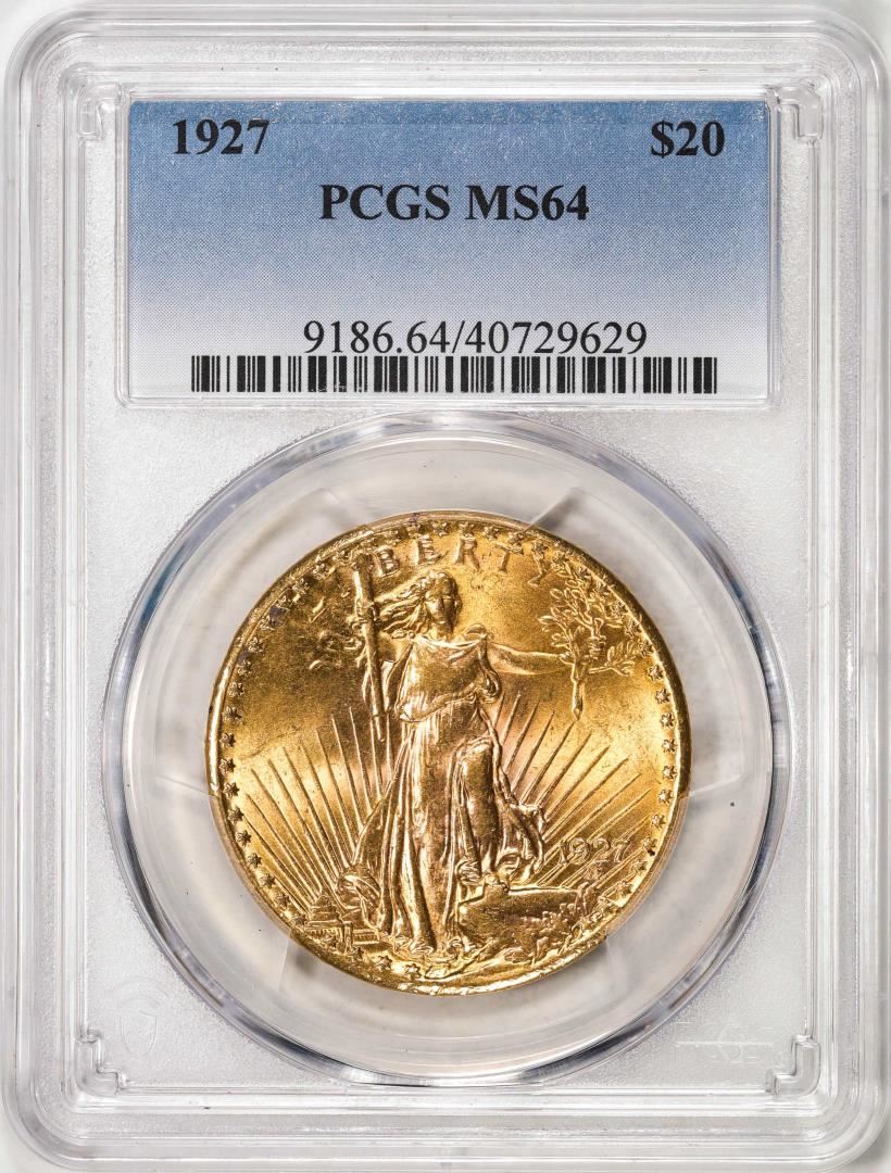 One 1927 $20 St. Gaudens Double Eagle Gold Coin PCGS MS64. PCGS Graded.