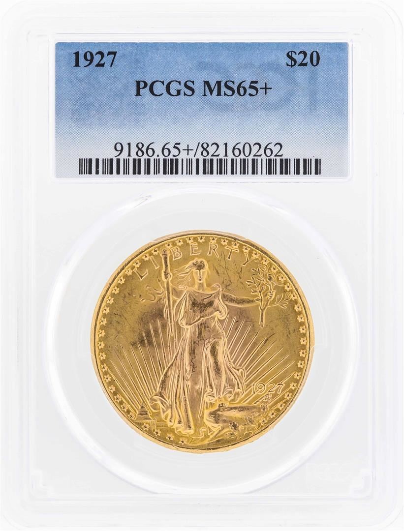 One 1927 $20 St. Gaudens Double Eagle Gold Coin PCGS MS65+. PCGS Graded.