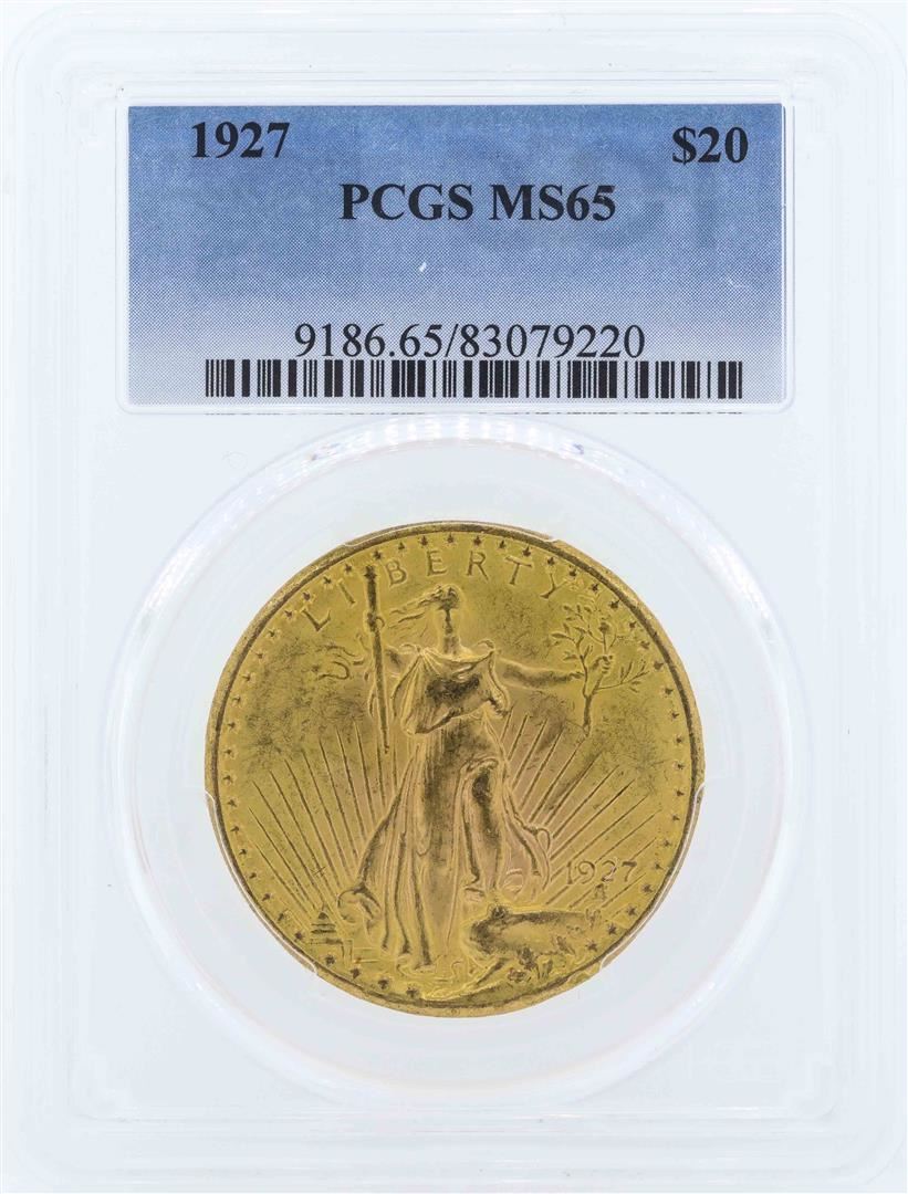 One 1927 $20 St. Gaudens Double Eagle Gold Coin PCGS MS65. PCGS Graded.